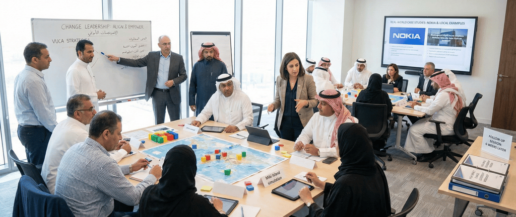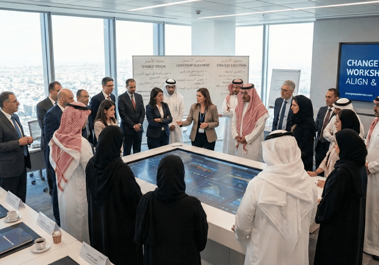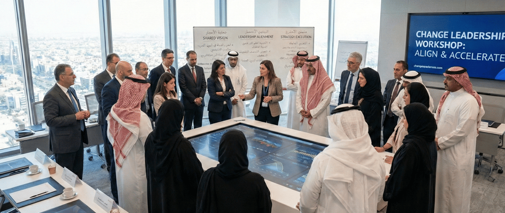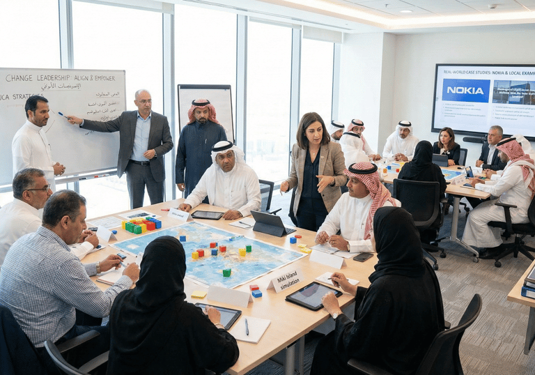Designed for senior leaders, department heads, transformation sponsors, and executive teams responsible for driving strategic change and shaping organizational culture. This workshop is ideal for leadership groups seeking stronger alignment, unified decision‑making, and the ability to lead through complexity with confidence. Bilingual delivery (Arabic/English) ensures accessibility for diverse leadership teams across Saudi organizations.